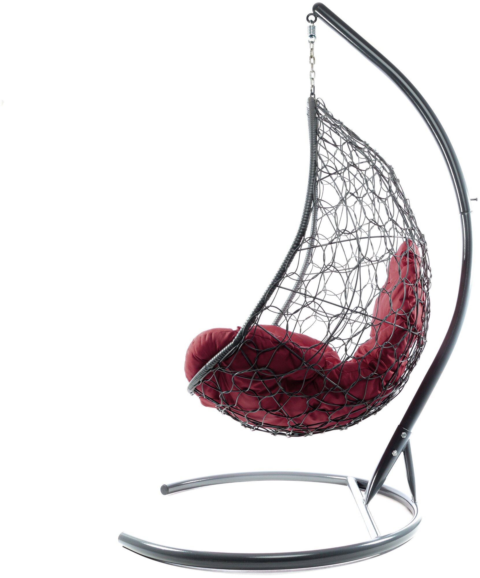 Подвесное кресло M-Group овал ротанг чёрное, бордовая подушка