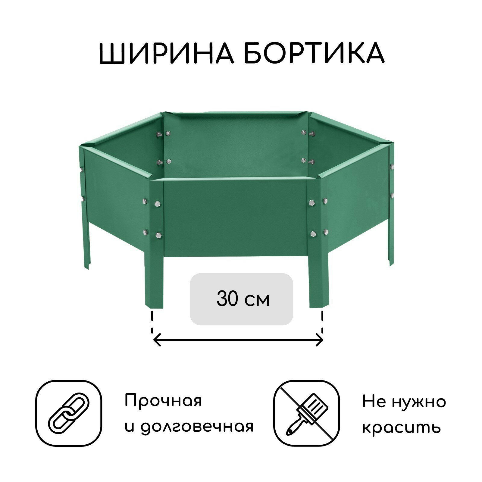 Клумба оцинкованная, d = 140 см, высота бортика 15 см, зелёная,
