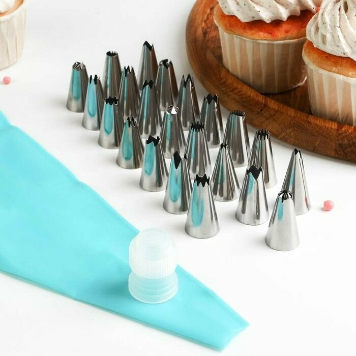 Набор кондитерский Доляна, 24 предмета: 22 насадки, мешок, адаптер, насадки интересное: