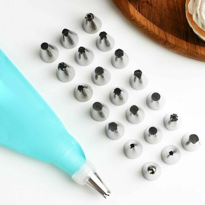 Купить Набор кондитерский Доляна, 24 предмета: 22 насадки, мешок, адаптер, насадки