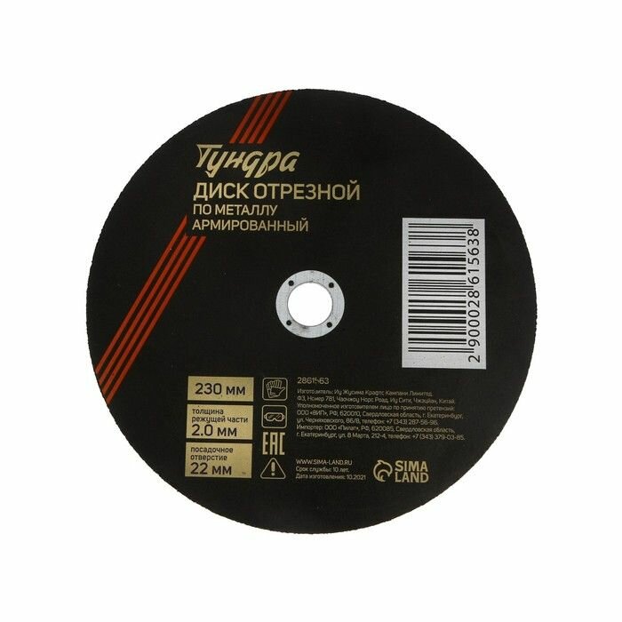 Диск отрезной по металлу тундра , армированный, 230 х 2.0 х 22 мм 2861563 интересное: