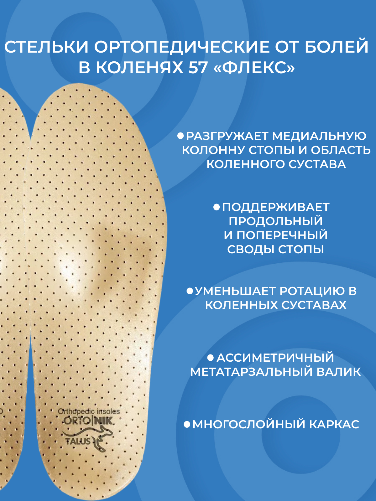 Стельки ортопедические для разгрузки коленных суставов Talus 57 Флекс, при болях в коленях, при плоскостопии, размер 42