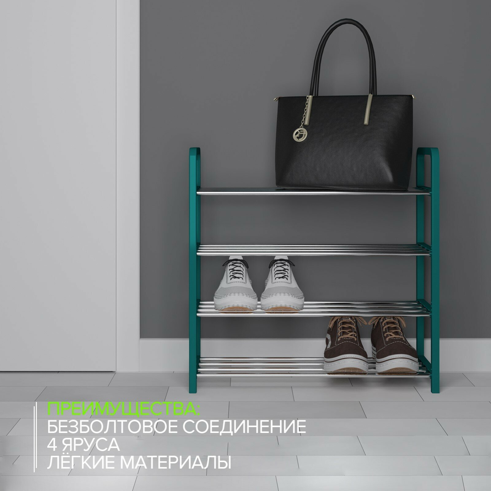 Полка для обуви Доляна, 4 яруса, 42x19x60 см, цвет зеленый./В упаковке шт: 1