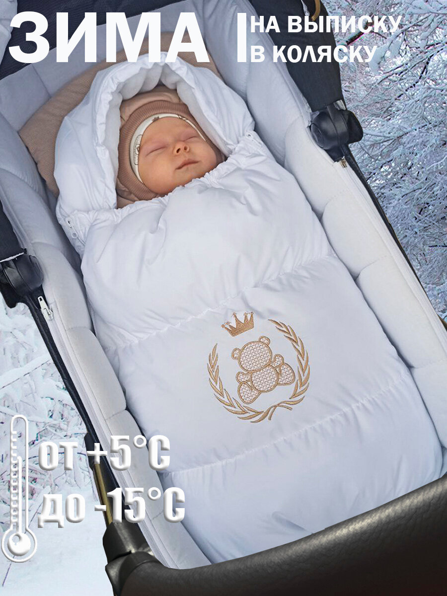 Купить Зимний конверт для новорожденных девочек и мальчиков на выписку в коляску / в автолюльку / на прогулку