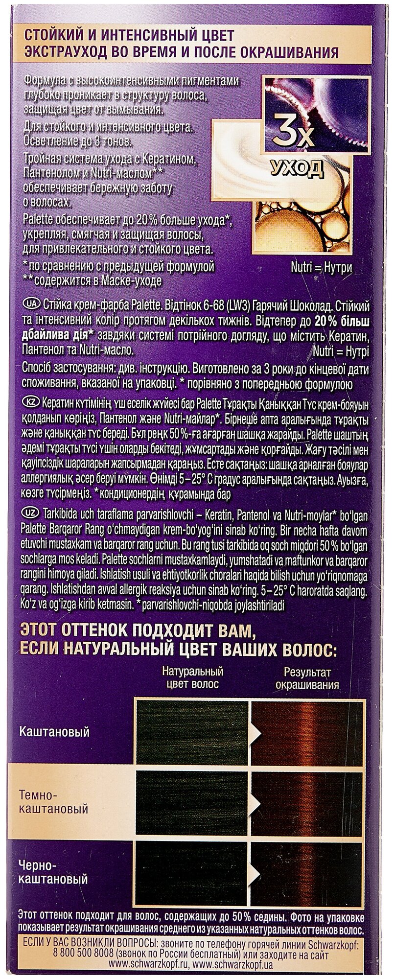 Палетт Стойкая крем-краска Интенсивный цвет, LW3 6-68 горячий шоколад, 110 мл - 3 шт