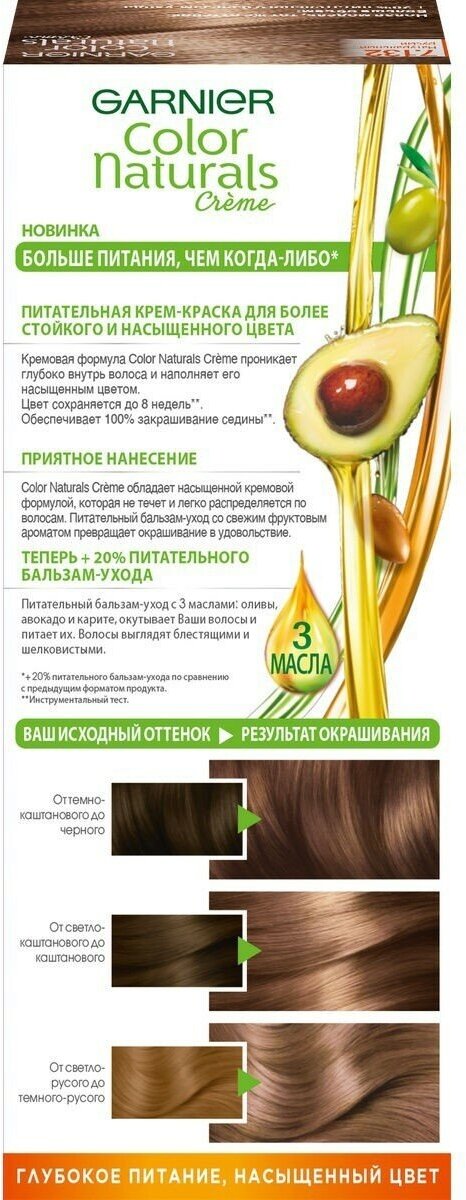 GARNIER Color Naturals стойкая питательная крем-краска для волос, 6.25 шоколад, 110 мл.