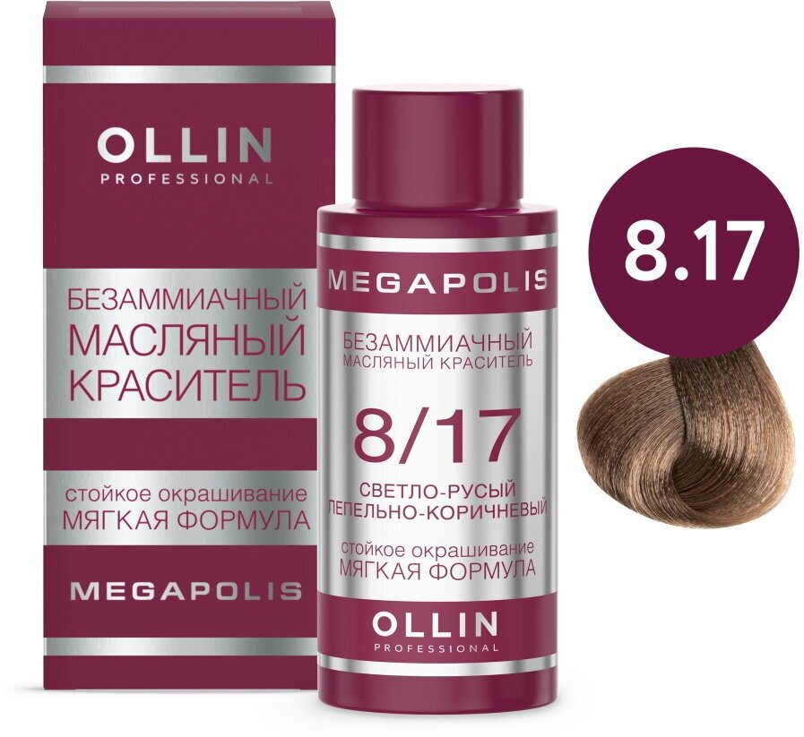 Купить Ollin Megapolis - Оллин Мегаполис Профессиональный масляный краситель, 50 мл - Мегаполис 8/17 светло-русый пепельно-коричневый