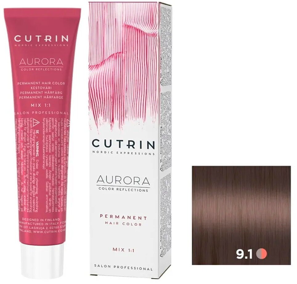 Cutrin Aurora крем-краска для волос 9/1 Очень светлый пепельный блондин 60мл