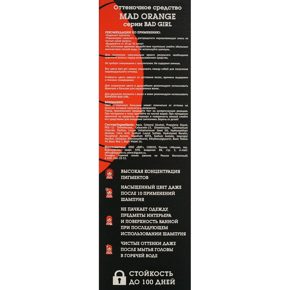 BAD GIRL, Оттеночное средство, неоновый оранжевый, Mad Orange, 150 мл