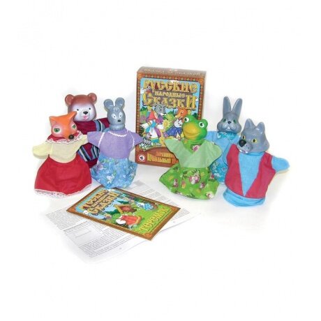 | Комплектация | персонажи-лягушка, медведь,зайчик, мышка,лисичка, волк, сценарии и рекомендации по постановке спектакля в домашнем кукольном театре. |