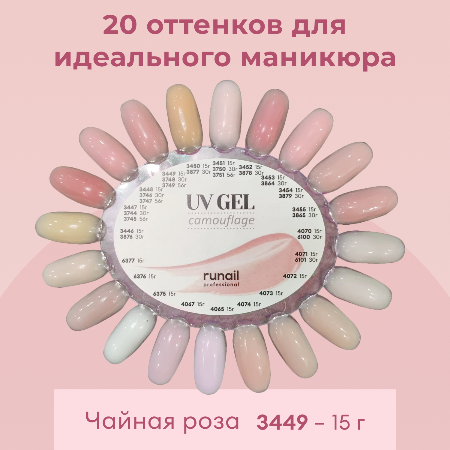 Камуфлирующий УФ-гель Runail Professional Розовый шелк, 15 г