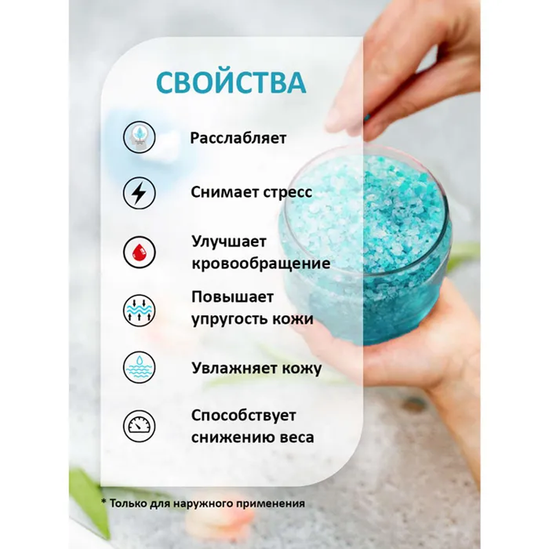 | Способ применения | Растворите 175г соли (треть банки) в ванне с теплой водой (t 36°С-38°С), принимайте ванну 15-20минут. Рассчитано на 3 применения. |