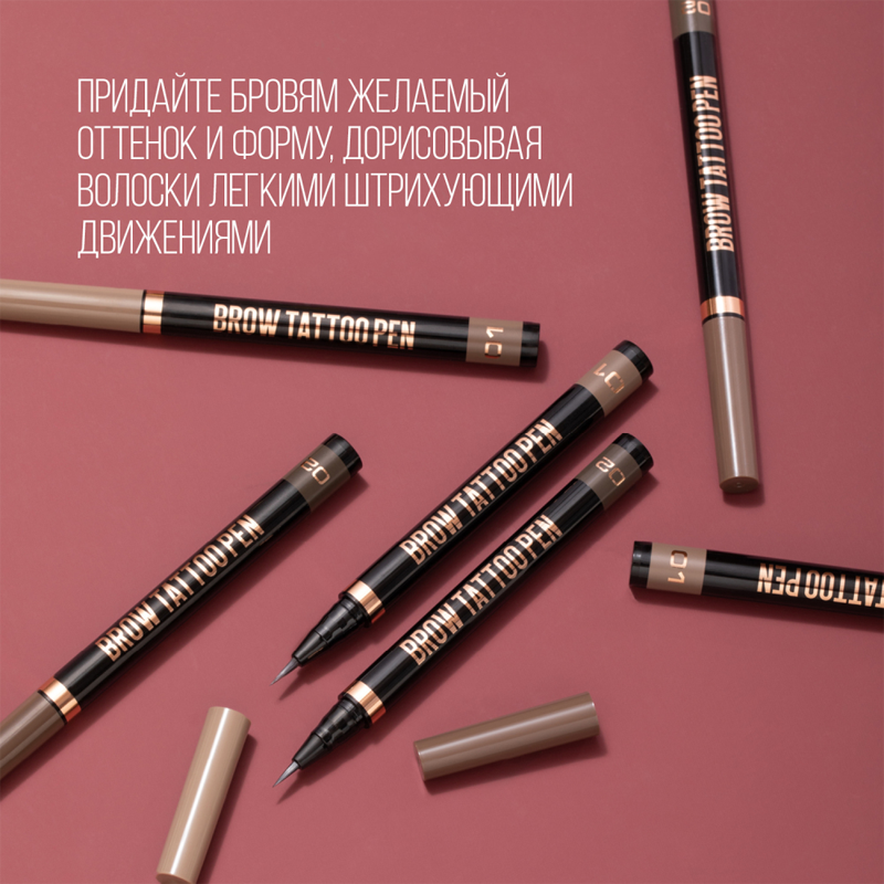 STELLARY Лайнер стойкий для бровей Brow Tattoo Pen, 0,7 мл, 02 Темно-коричневый