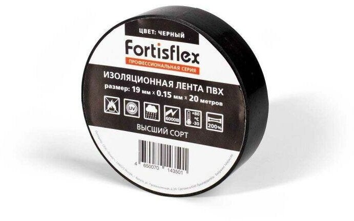 Fortisflex Изолента ПВХ 19х0.15х20 черная