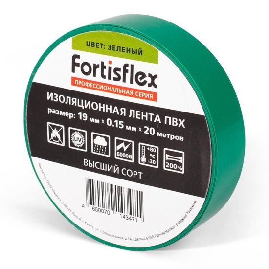 Fortisflex Изолента ПВХ 19х0.15х20 зеленая