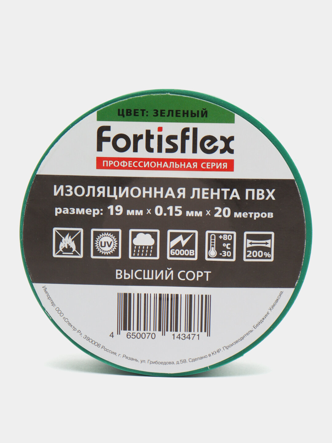 Fortisflex Изолента ПВХ 19х0.15х20 зеленая