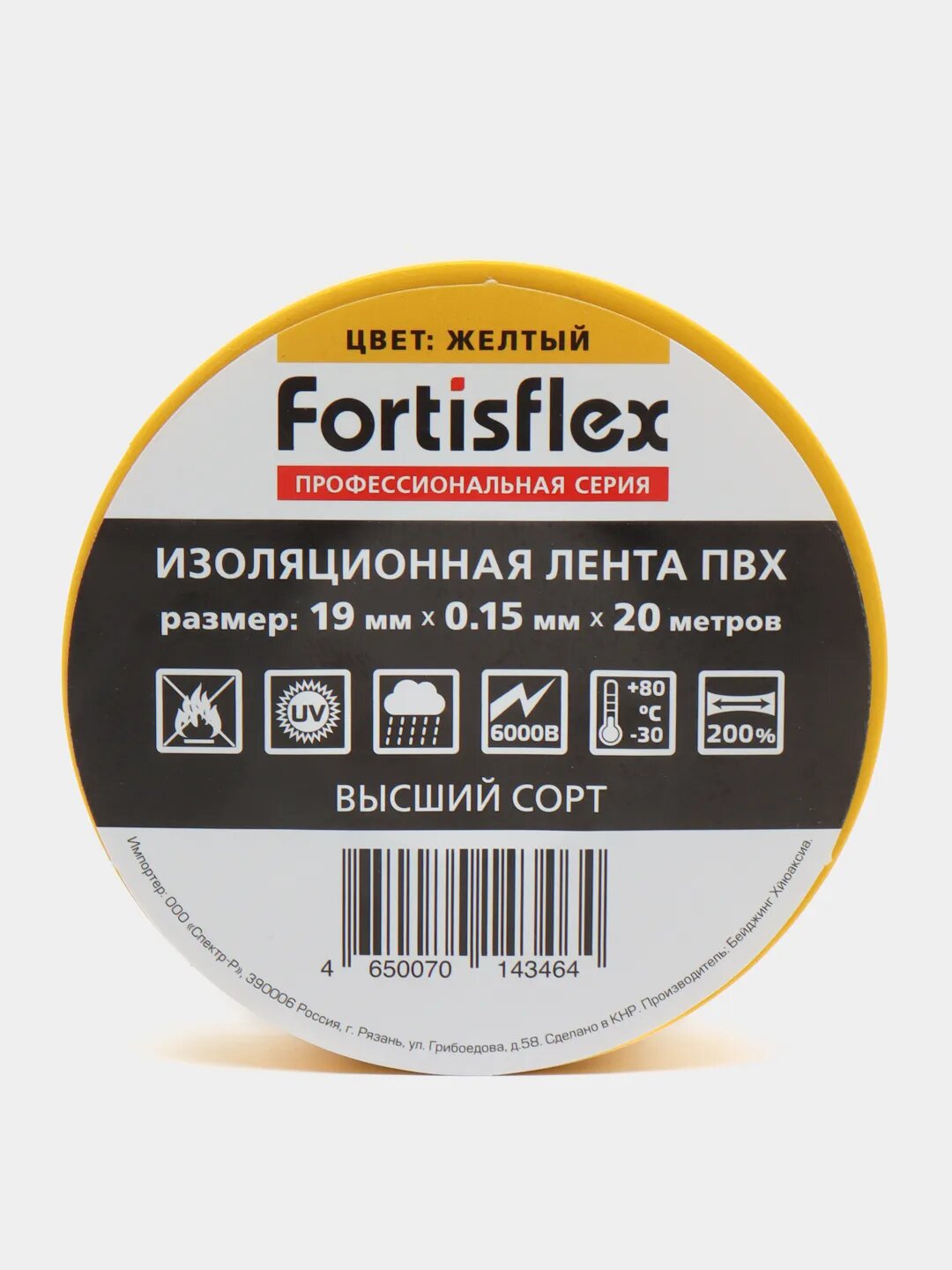 Fortisflex Изолента ПВХ 19х0.15х20 желтая