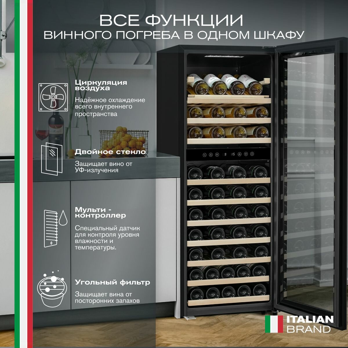 Компрессорный винный шкаф Meyvel MV73-KBF2 интересное:
