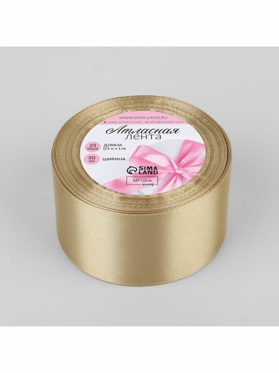 Арт Узор Лента атласная, 50 мм × 23 ± 1 м, цвет шампань №132
