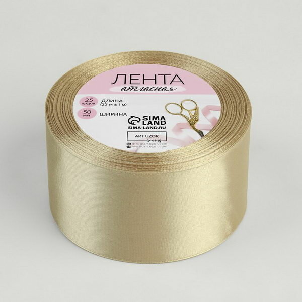 Арт Узор Лента атласная, 50 мм × 23 ± 1 м, цвет шампань №132