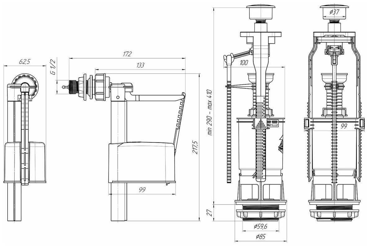 - Арматура для сливных бачков унитазов