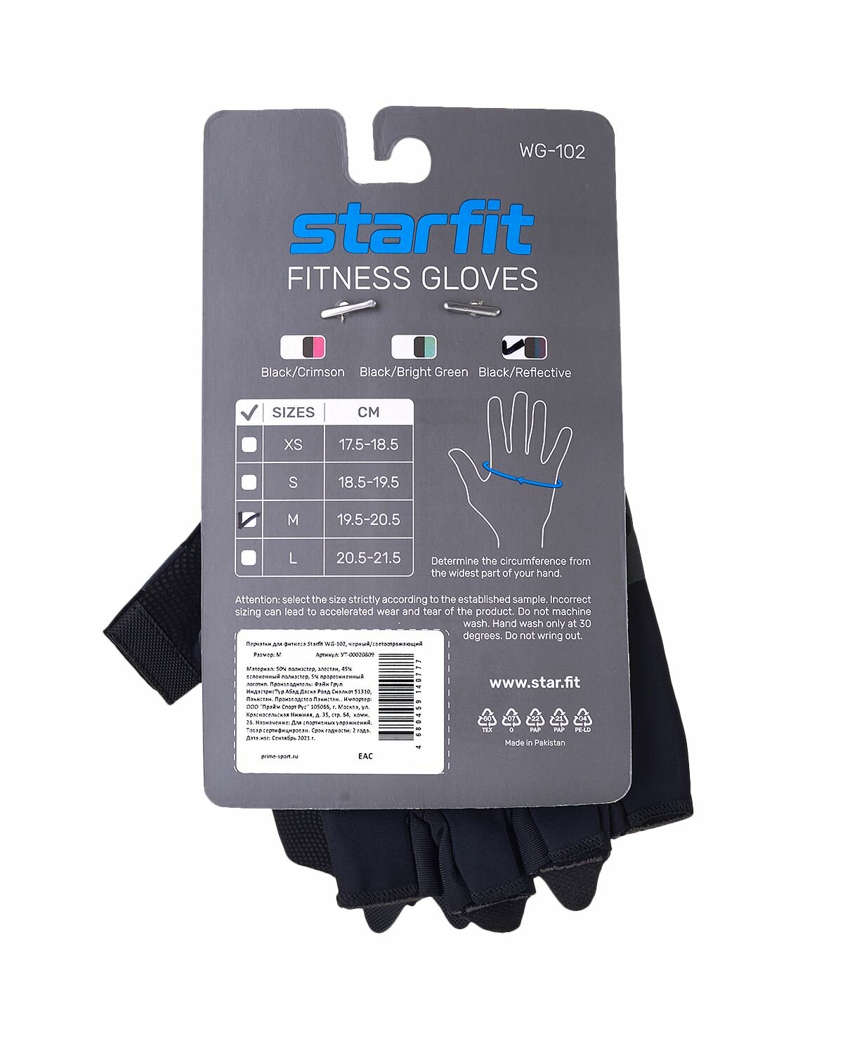 Перчатки для фитнеса Starfit Wg-102, черный/светоотражающий размер M