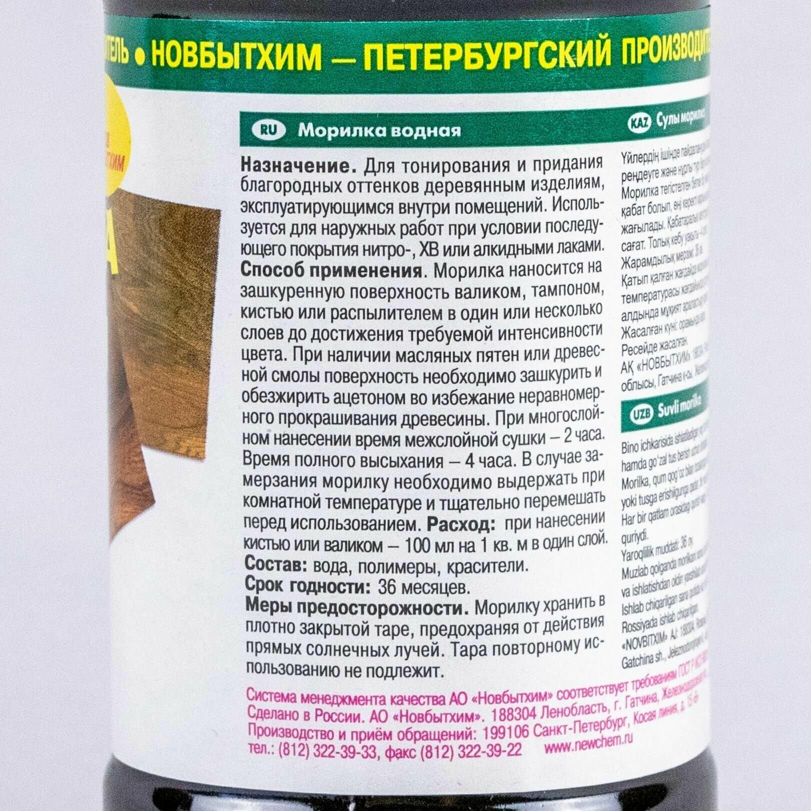 Морилка водная Новбытхим, 0,5 л, лиственница