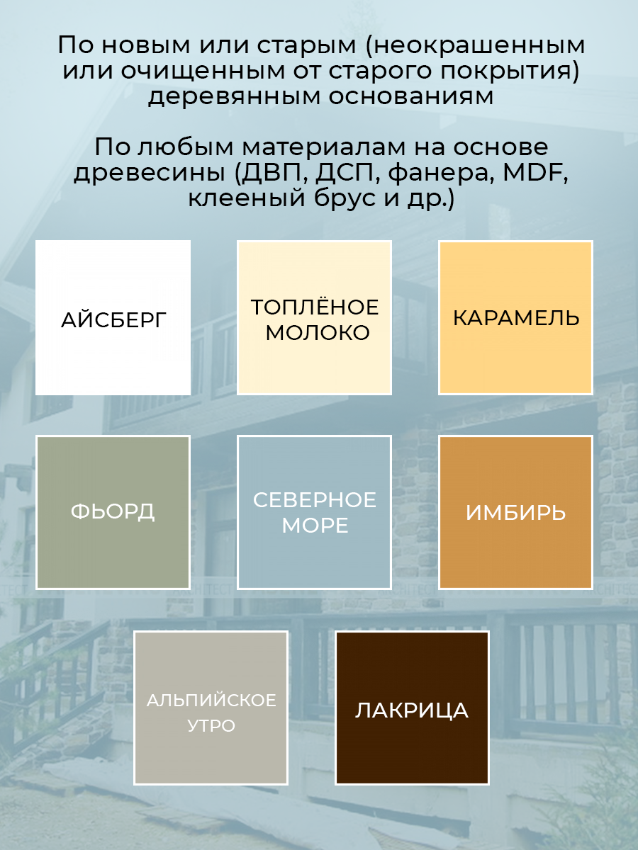 | Отзыв: | Использовали как для наружных, так и для внутренних работ. Хорошо закрашивает деревянные поверхности. На фото цвет Фьорд. |