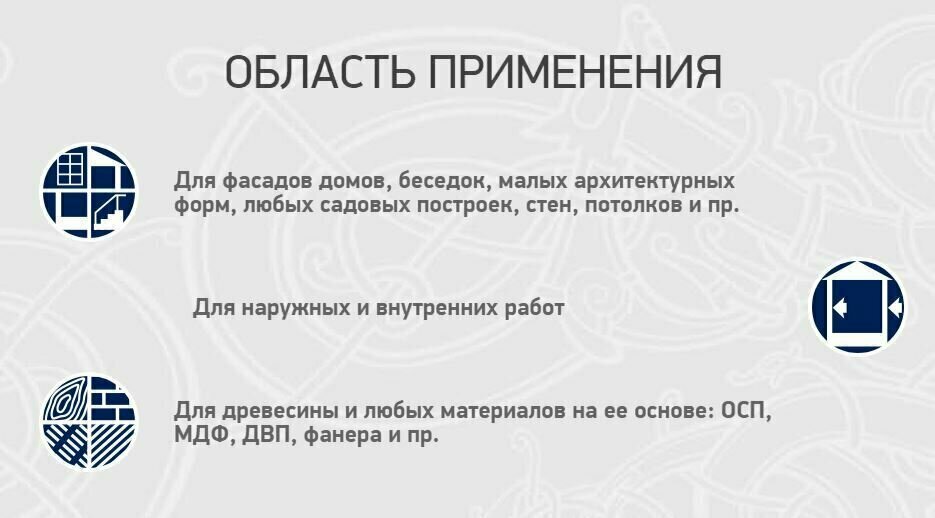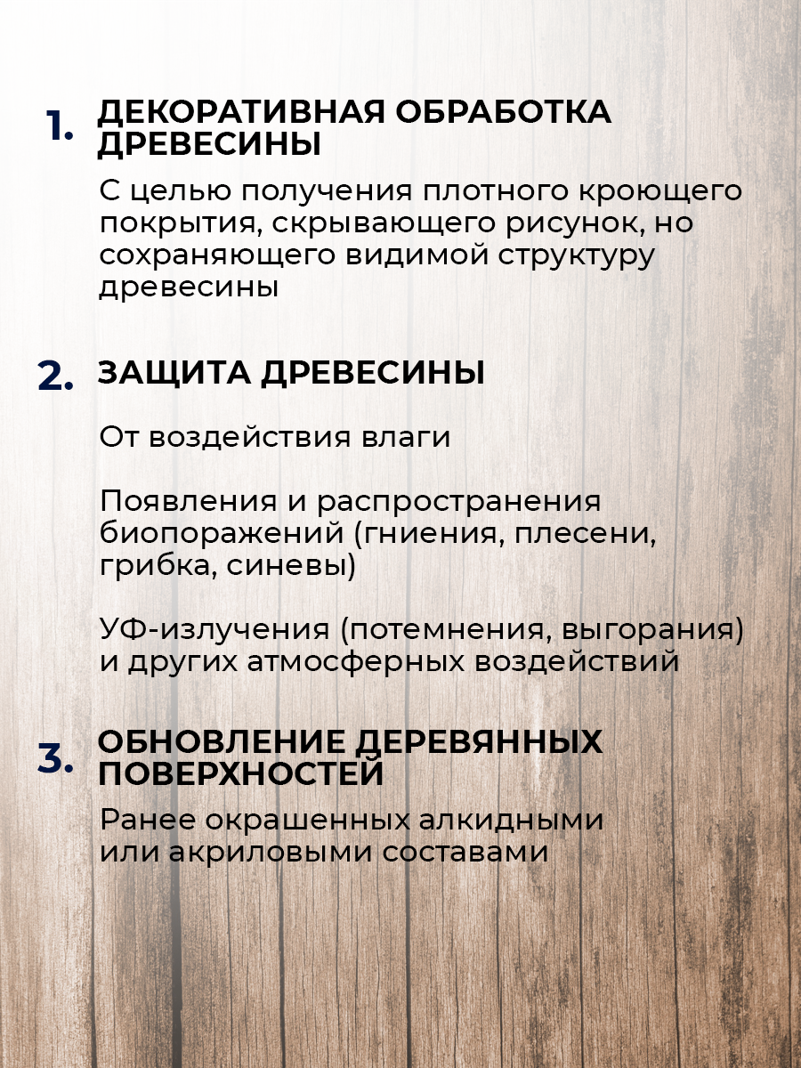 | Плюсы: | Плотное покрытие древесины даже в один слой!!!! |