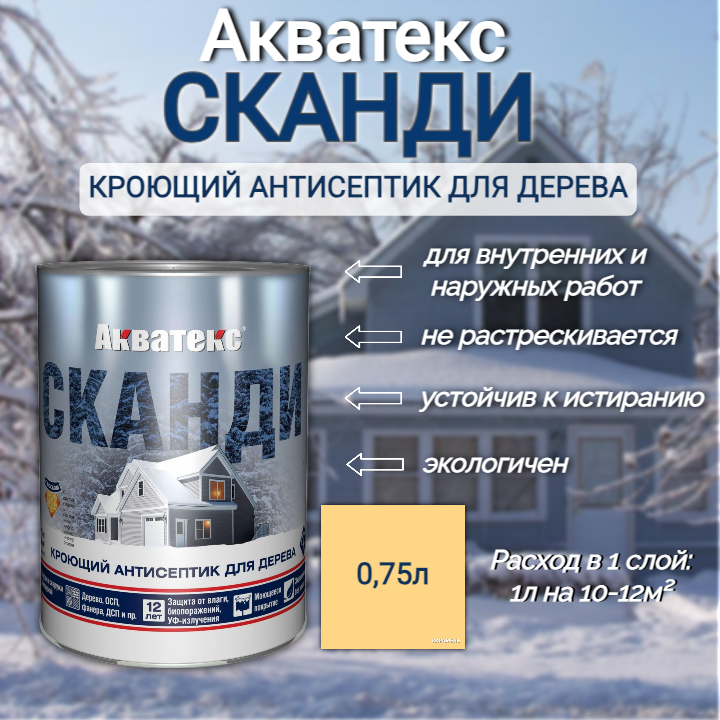 Акватекс сканди кроющий антисептик, топленое молоко, 0,75 л