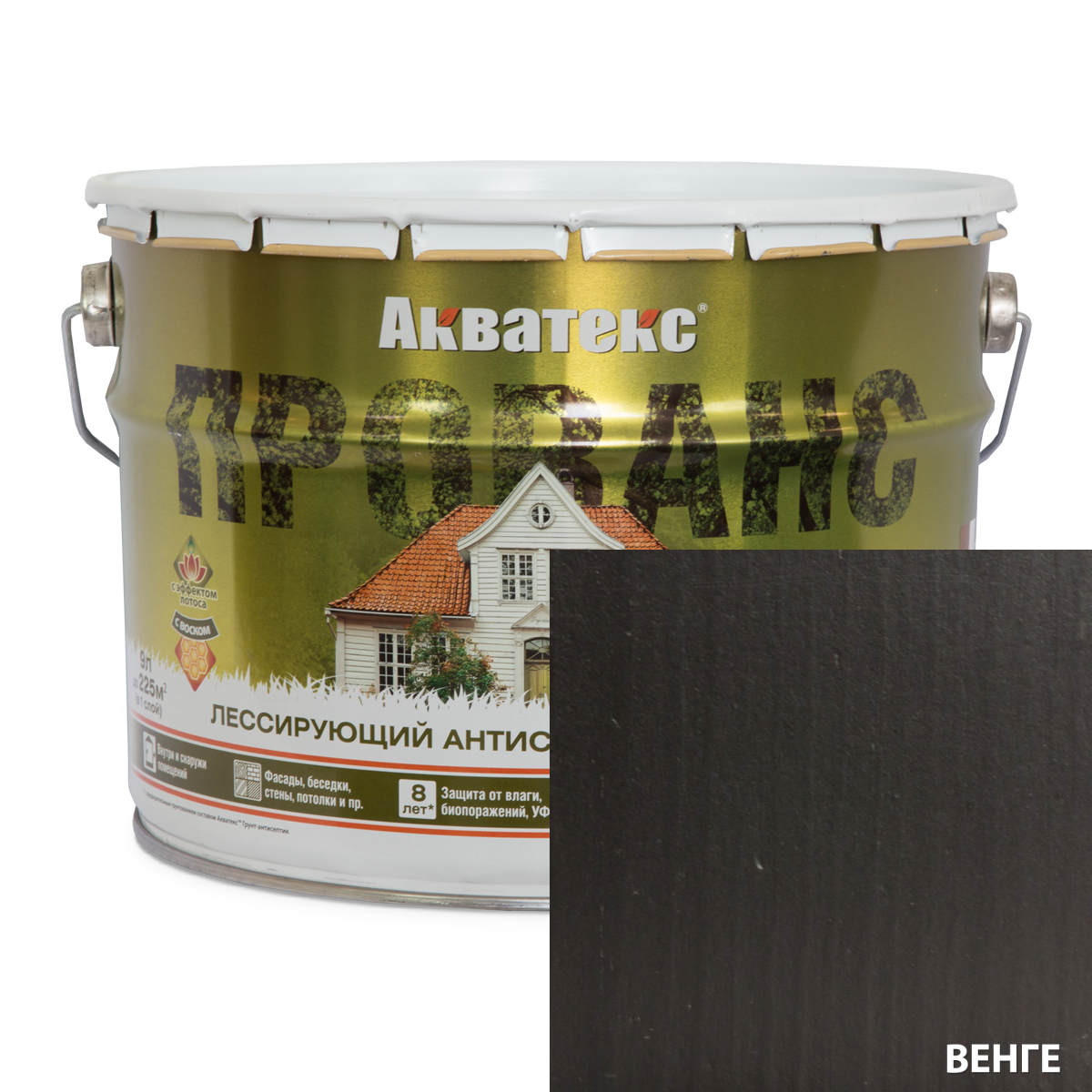 Антисептик для Дерева Акватекс Прованс 9л Венге Лессирующий Инновационный для Внутренних и Наружных Работ.
