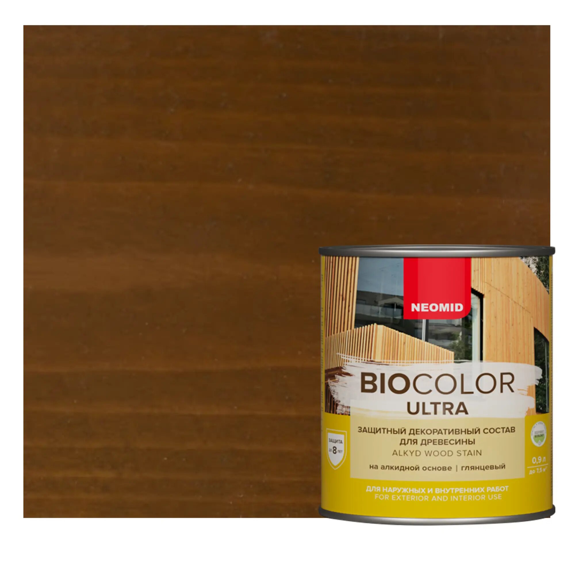 Декоративная Пропитка для Древесины Neomid Biocolor Ultra 9л Орех Полуглянцевая с Усиленной Защитой / Неомид Био Колор Ультра.