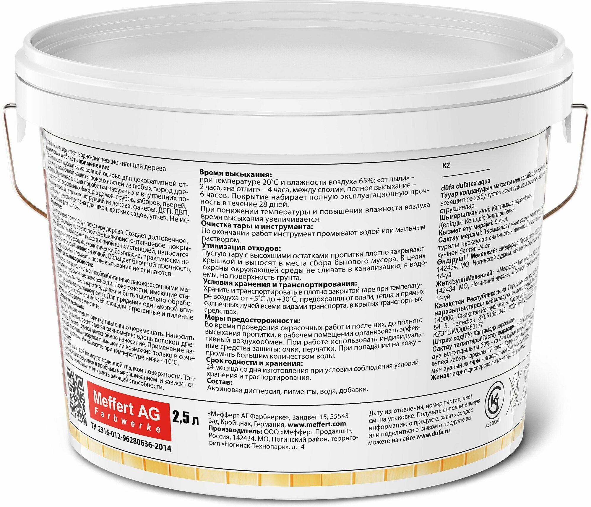 Пропитка для дерева водная белая Dufatex aqua 2.5 л для внутренних и наружных работ, тонирующая дерево, подходит в качестве базы под краску