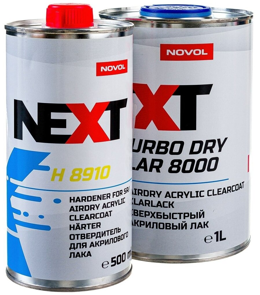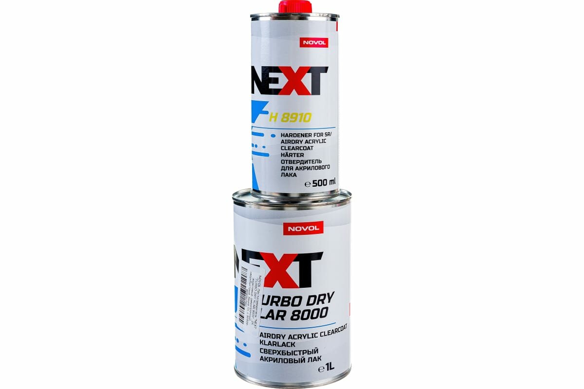 NOVOL Лак +отвердитель "NEXT "TURBO DRY KLAR 8000", 2К акриловый, сверхпрочный, сверхбыстрый, банка 1л. с 90994-90905
