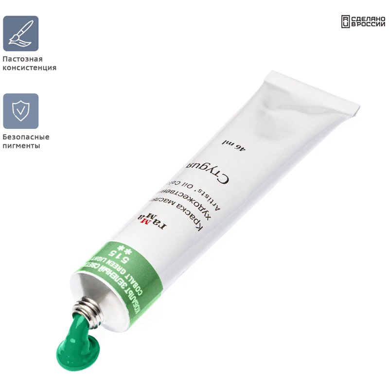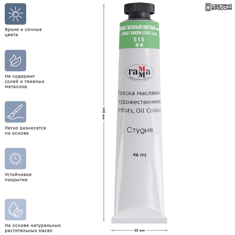 Купить Гамма Краска масляная в тубе 46 мл, Гамма "Студия", №515 кобальт зелёный светлый