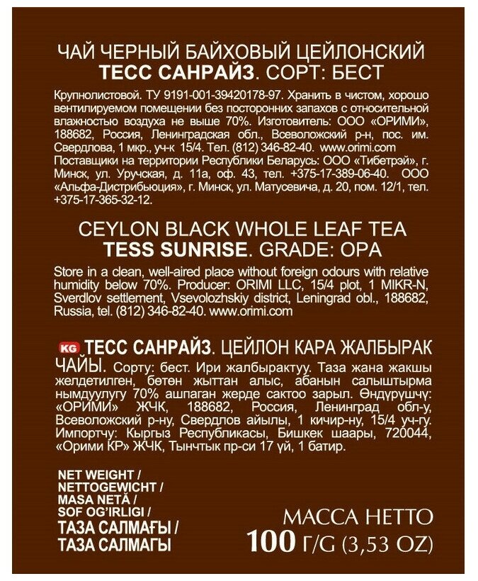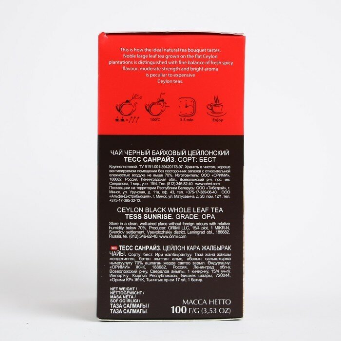 Чай черный TESS 100г/Sunrise/цейлонский/Орими Трейд