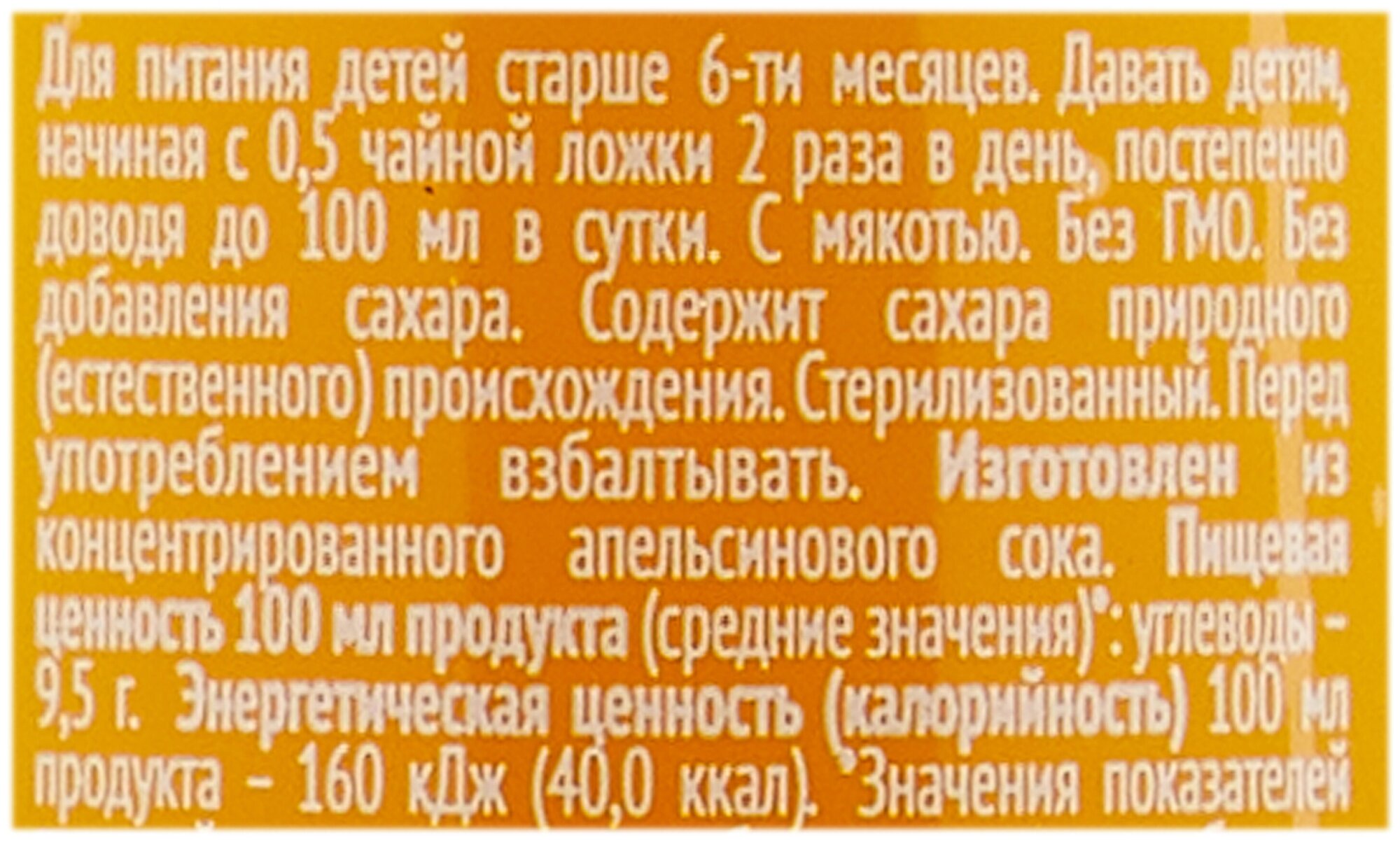 | Состав | концентрированный апельсиновый сок |