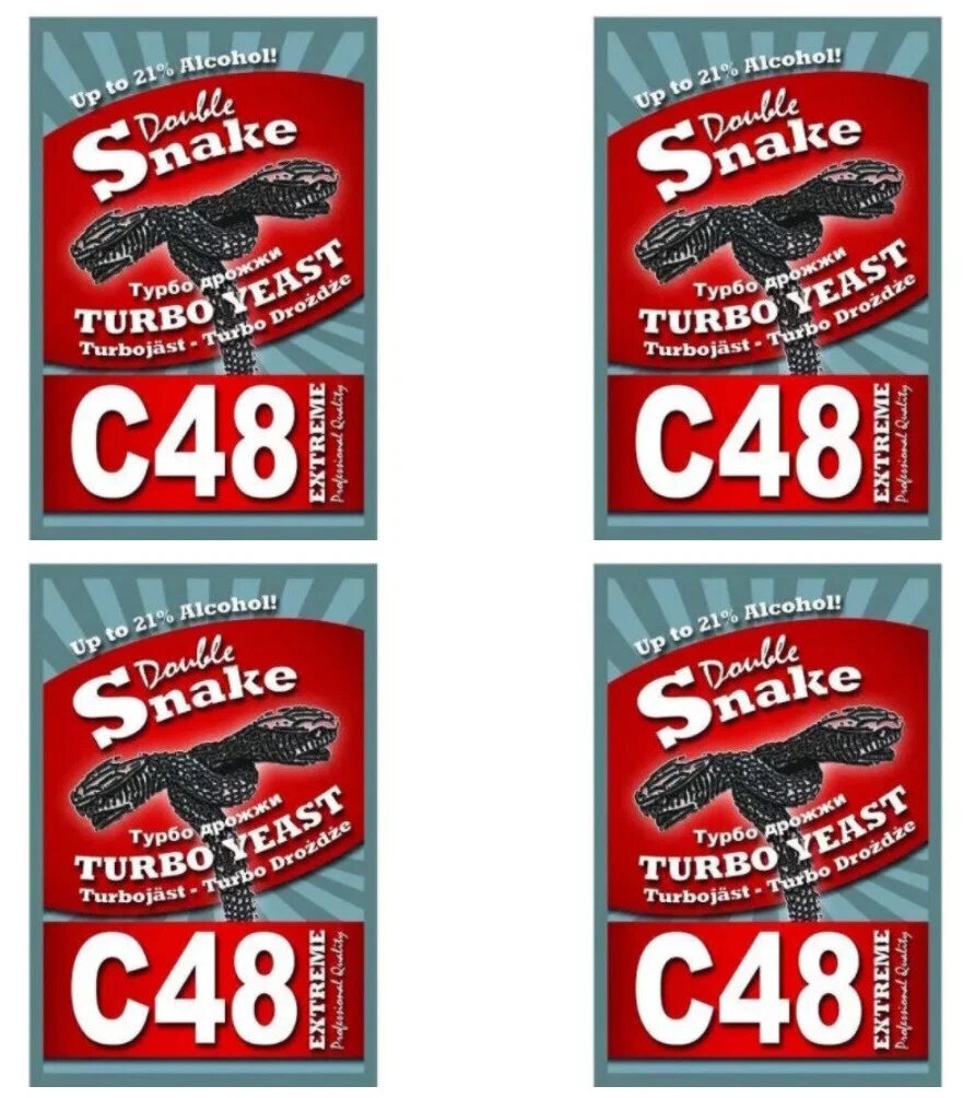 Спиртовые турбо дрожжи Double Snake C 48 (4 пачки)/ дрожжи для самогона, браги/ дрожжи turbo C48/ 130 гр