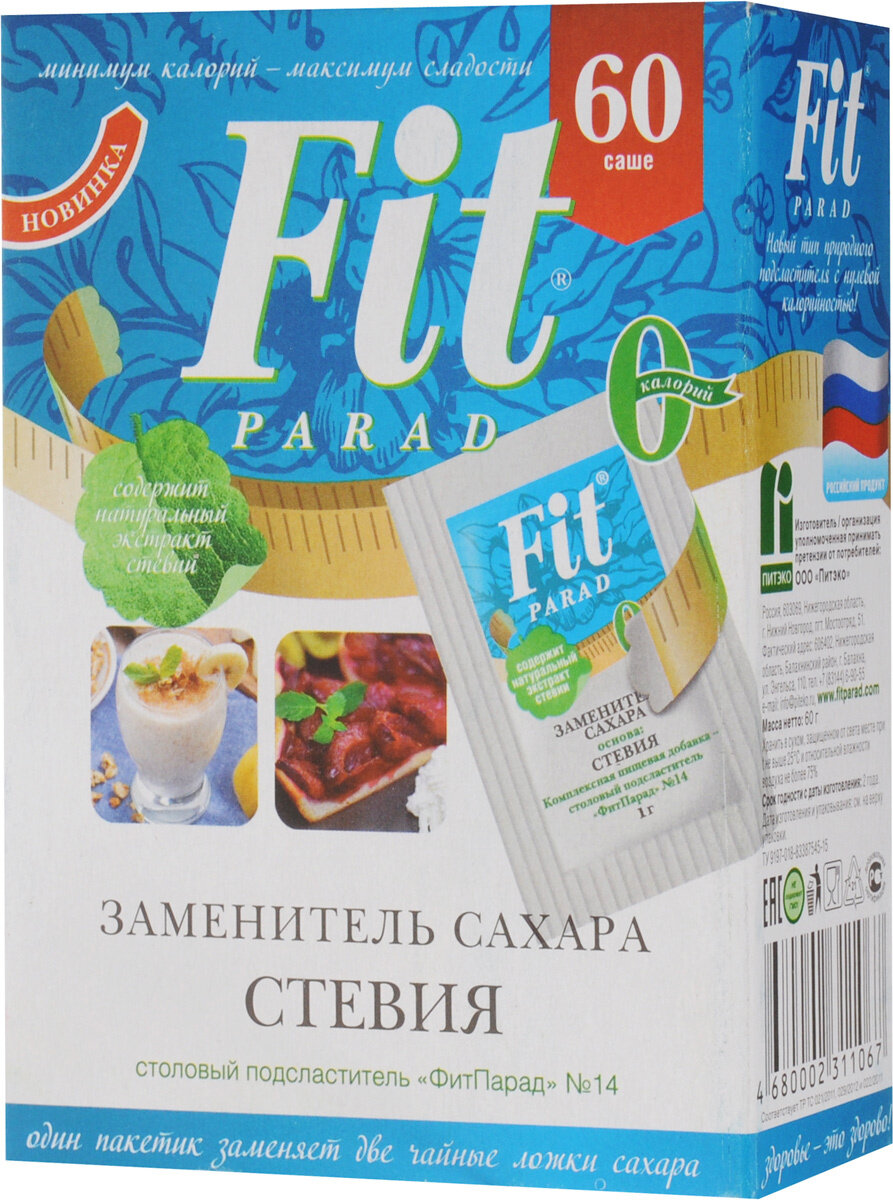 Заменитель сахара на основе стевии №14 Fit Parad 60 г 100 шт