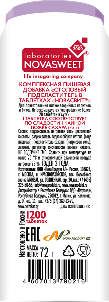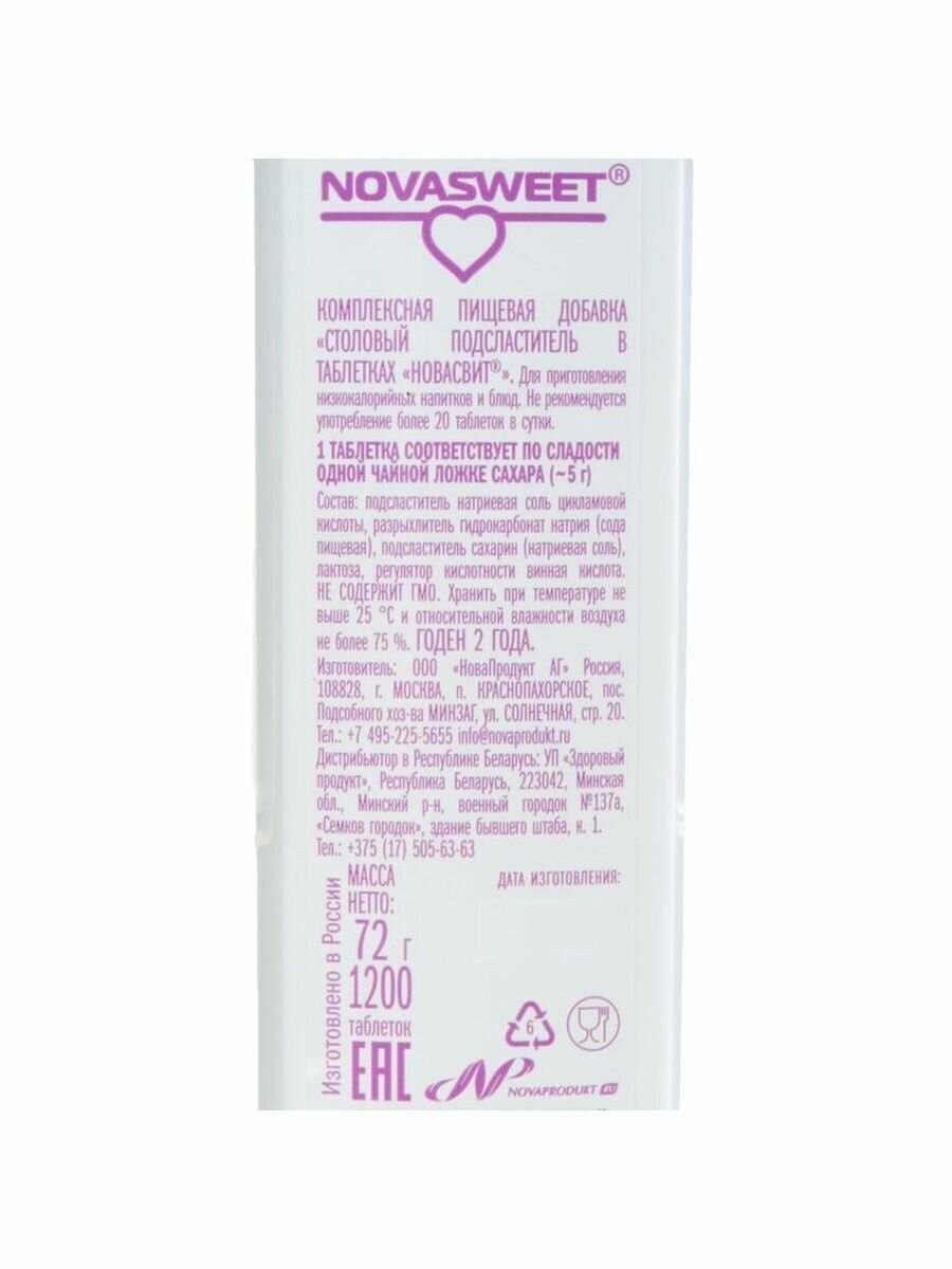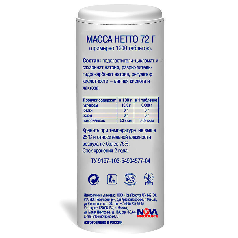 NOVASWEET Сахарозаменитель 0 калорий таблетки, 72 г, 1200 шт. в уп.