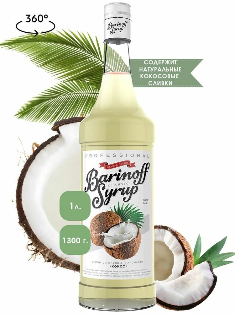 Сироп Barinoff Кокос, для кофе и коктейлей, 1 л