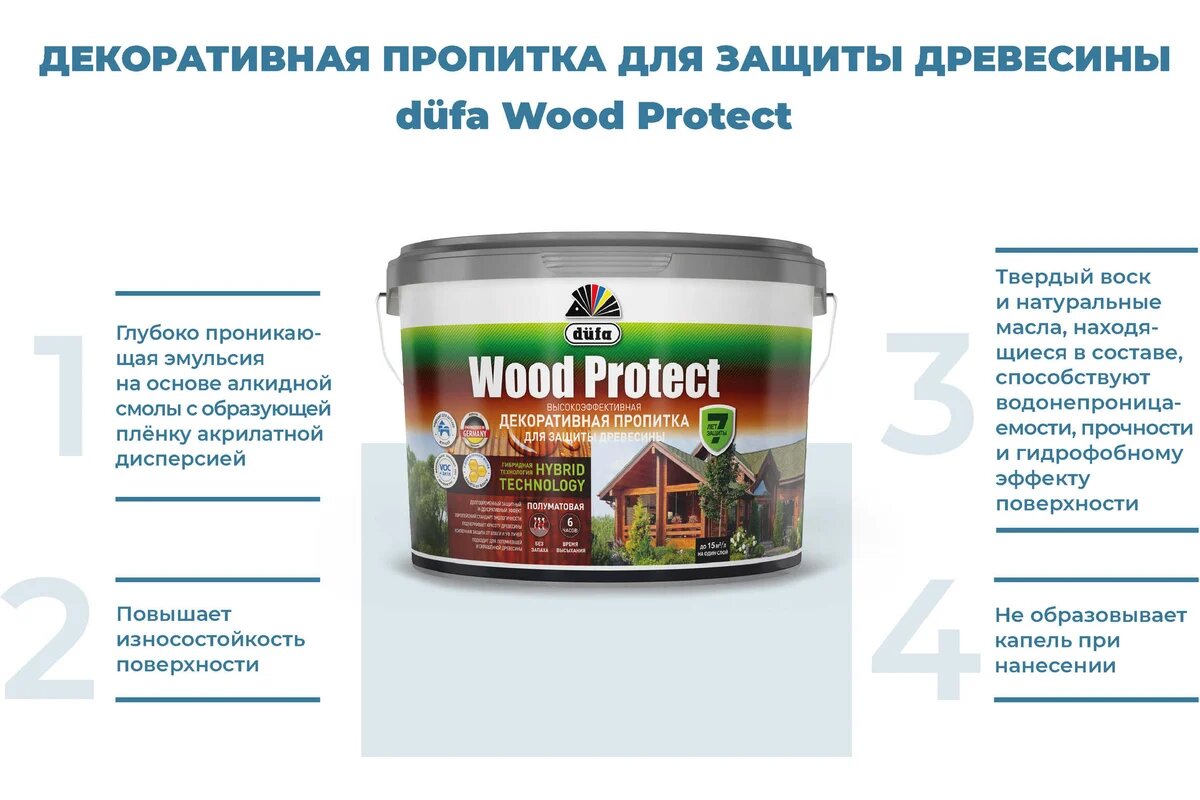 Dufa Wood Protect / Дюфа Вуд Протект Пропитка декоративная для защиты древесины бесцветный 2,5л