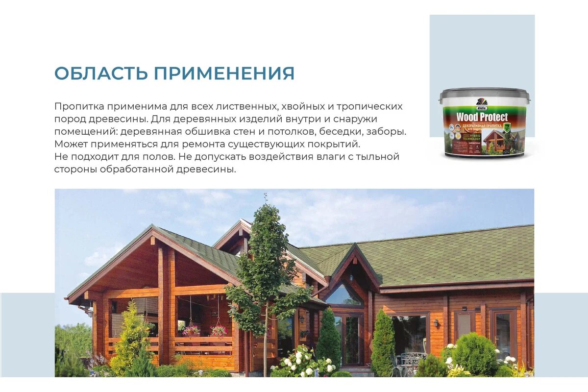 | Тип пропитки для дерева | водозащитная |