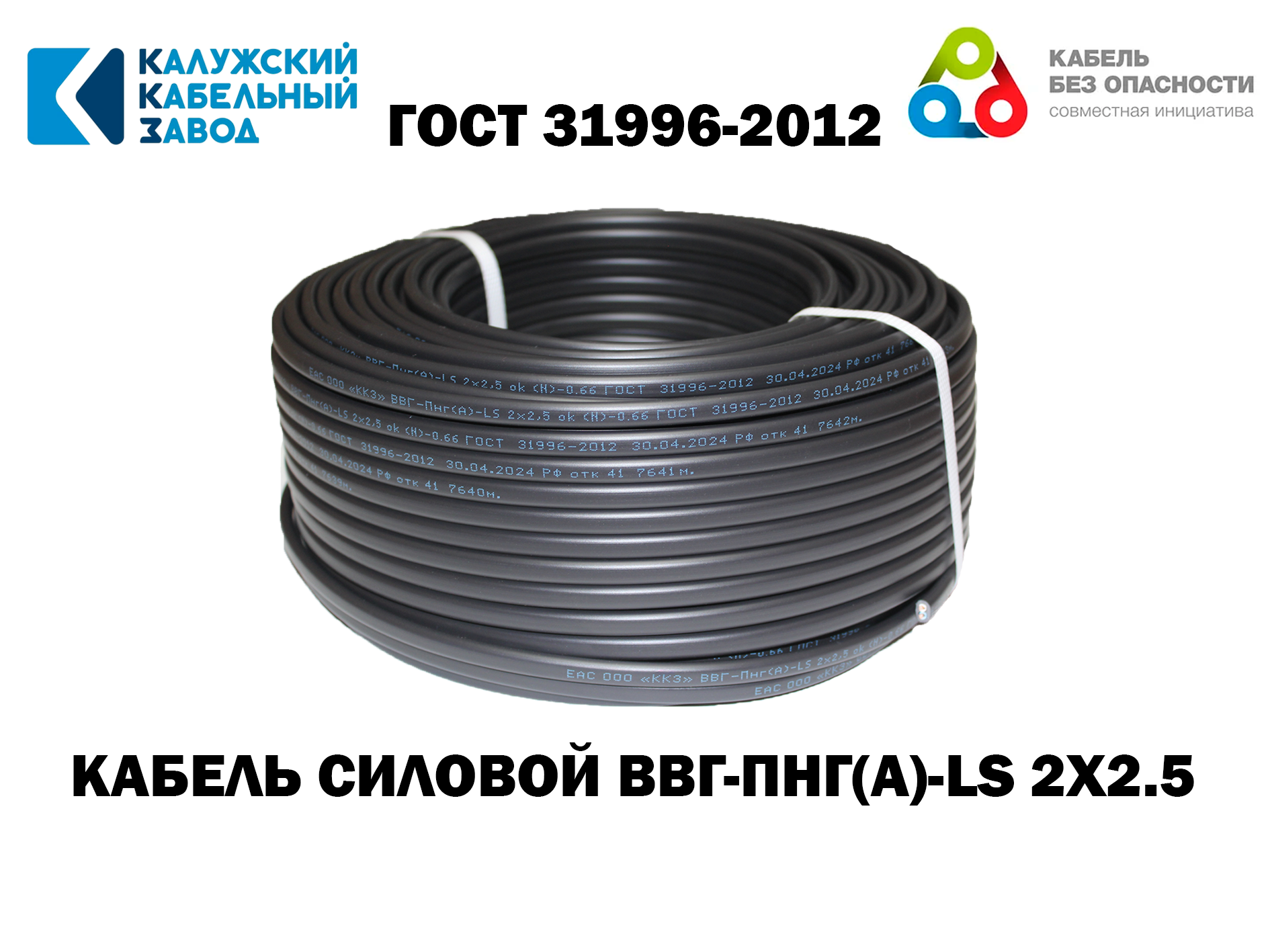 Кабель силовой ВВГ-Пнг(А)-LS 3х2,5 ГОСТ, 100 метров. КАЛУЖСКИЙ КАБЕЛЬНЫЙ ЗАВОД