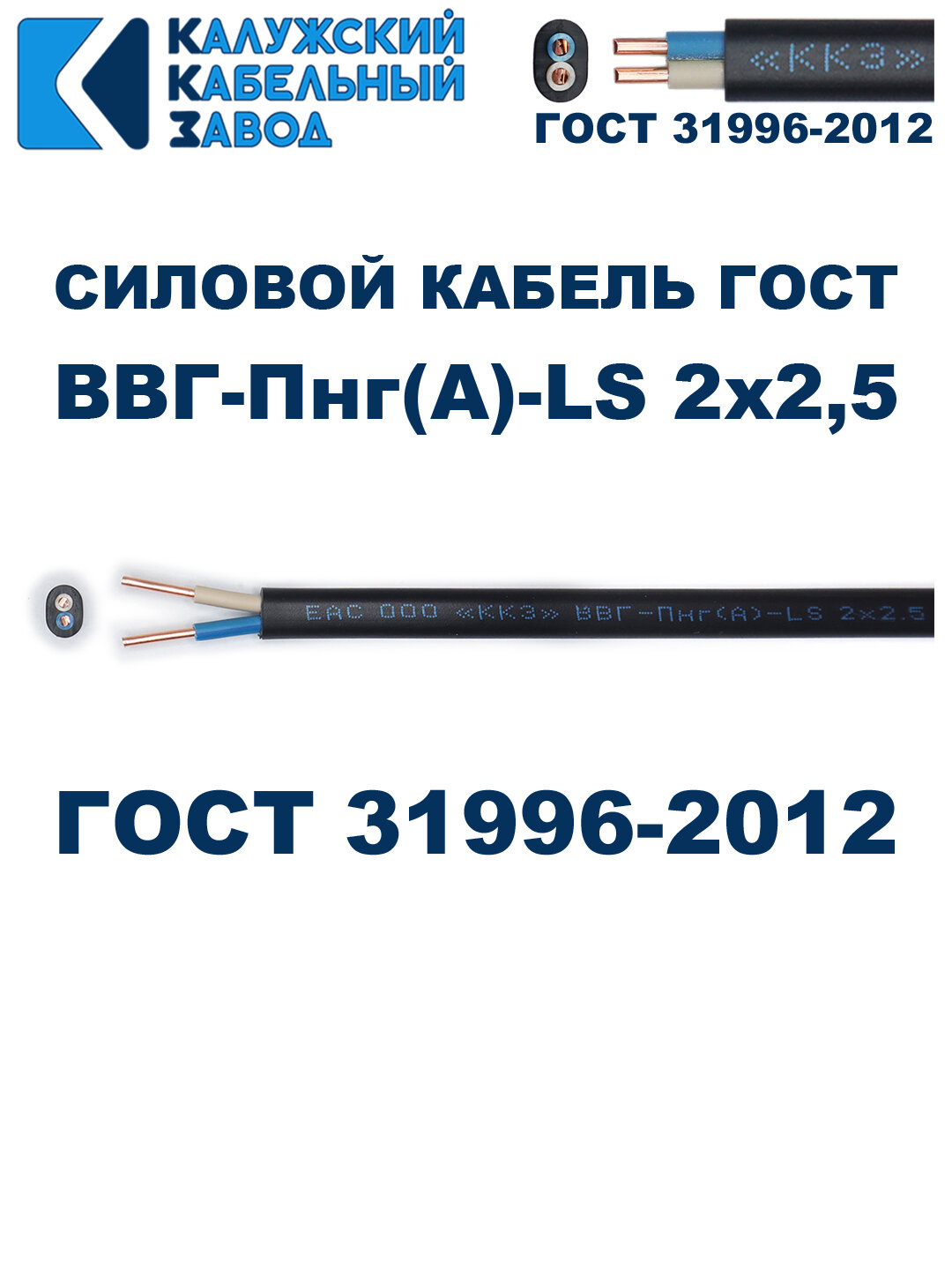 Кабель ВВГ-Пнг(А)-LS 2х2,5 ГОСТ Калужский кабельный завод, 10 метров
