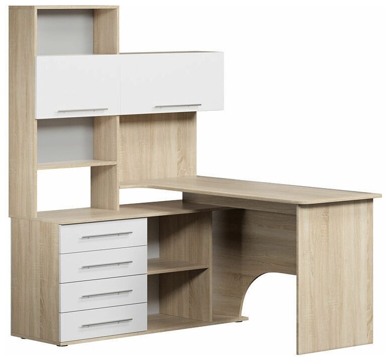 СохранитьСтол компьютерный КСТ-14Л левый, цвет дуб сонома/белый, ШхГхВ 140х124х183 см., выдвижные ящики слева, стол с тумбой и надстройкой интересное: