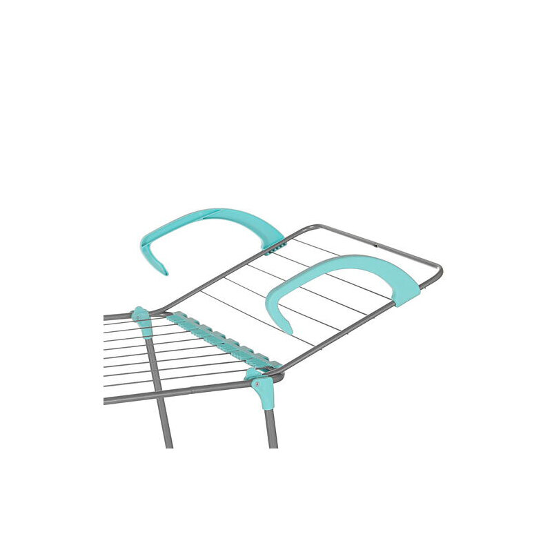 С одной стороны у ножек даже есть колёсики. Удобные крюки для сушки обуви и маленькие крючки для нижнего белья. Классная съемная секция которую можно переместить на батарею если сушилка не помещается в длину или нужно просто быстрее высушить на горячей батарее какие-то вещи. |