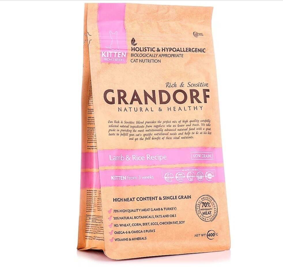 Купить GRANDORF SINGLE GRAIN KITTEN LAMB & TURKEY низкозерновой для котят с ягненком и индейкой (0,4 кг)