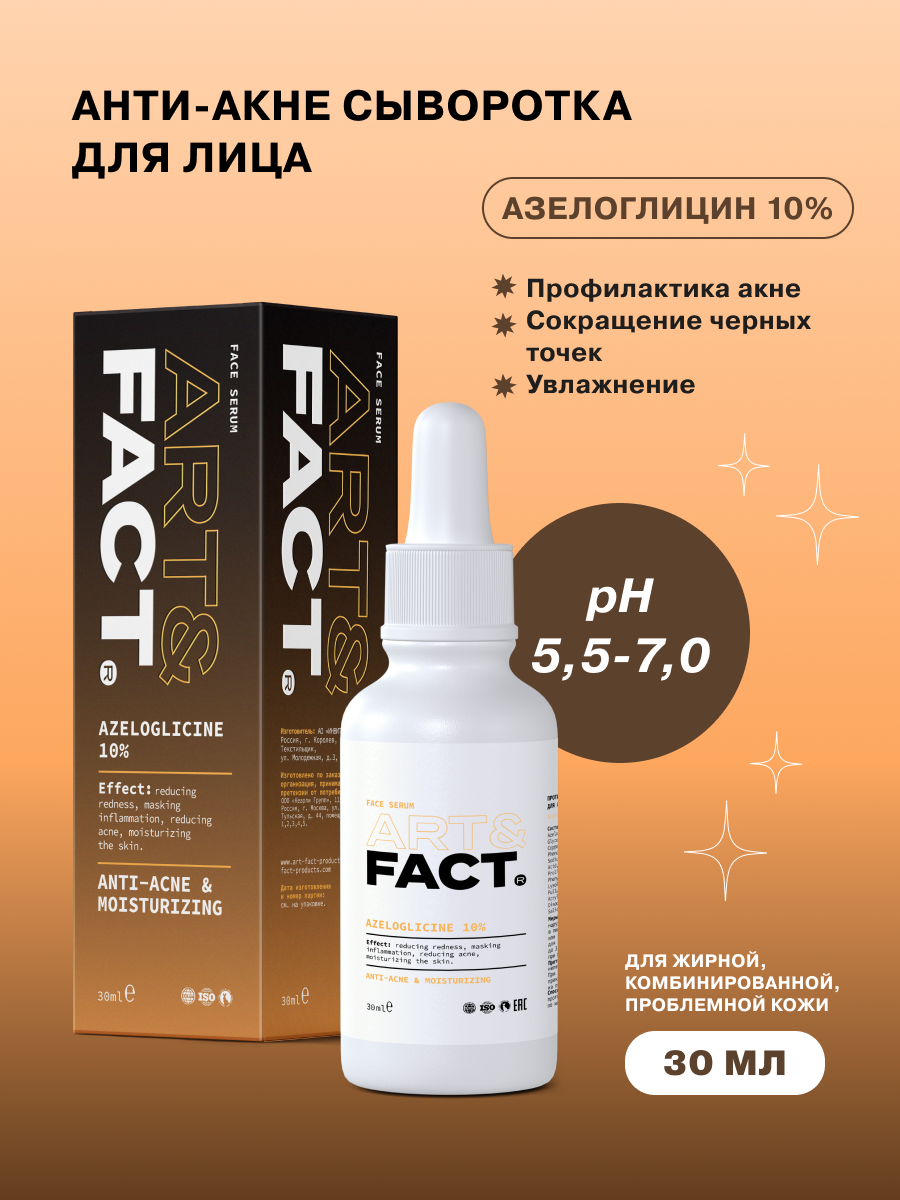ART&FACT. / Противовоспалительная анти-акне сыворотка для лица с азелоглицином 10%, 30 мл