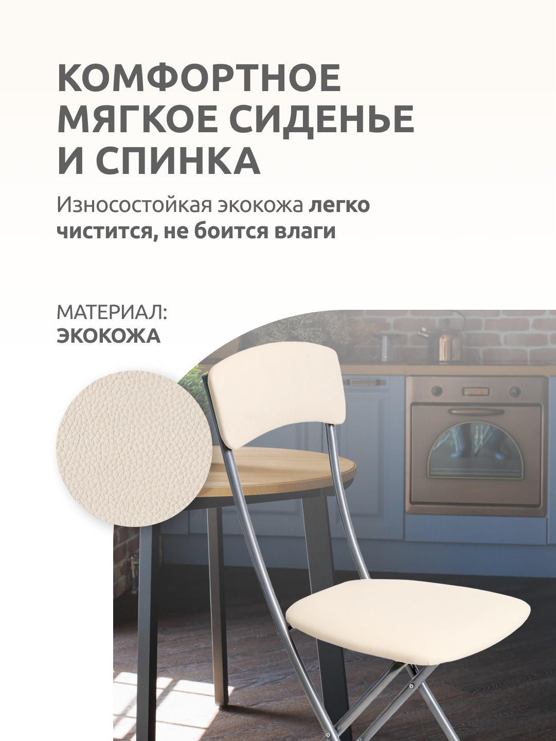 Стул кухонный складной со спинкой НИКА, ССН2/4 бежевый/серый